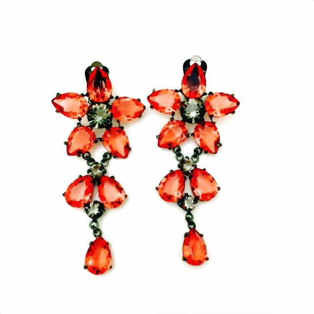 Modello Chandelier grande margherita con perno e clip, mono o bi/color Materiale: Argento 925 Anallergico Galvanica: Rutenio Colore pietre: Rosso e Fumé