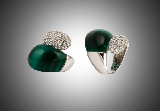Anello papalone con zirconi e pietra naturale dura, taglio liscio (contrarie) come foto